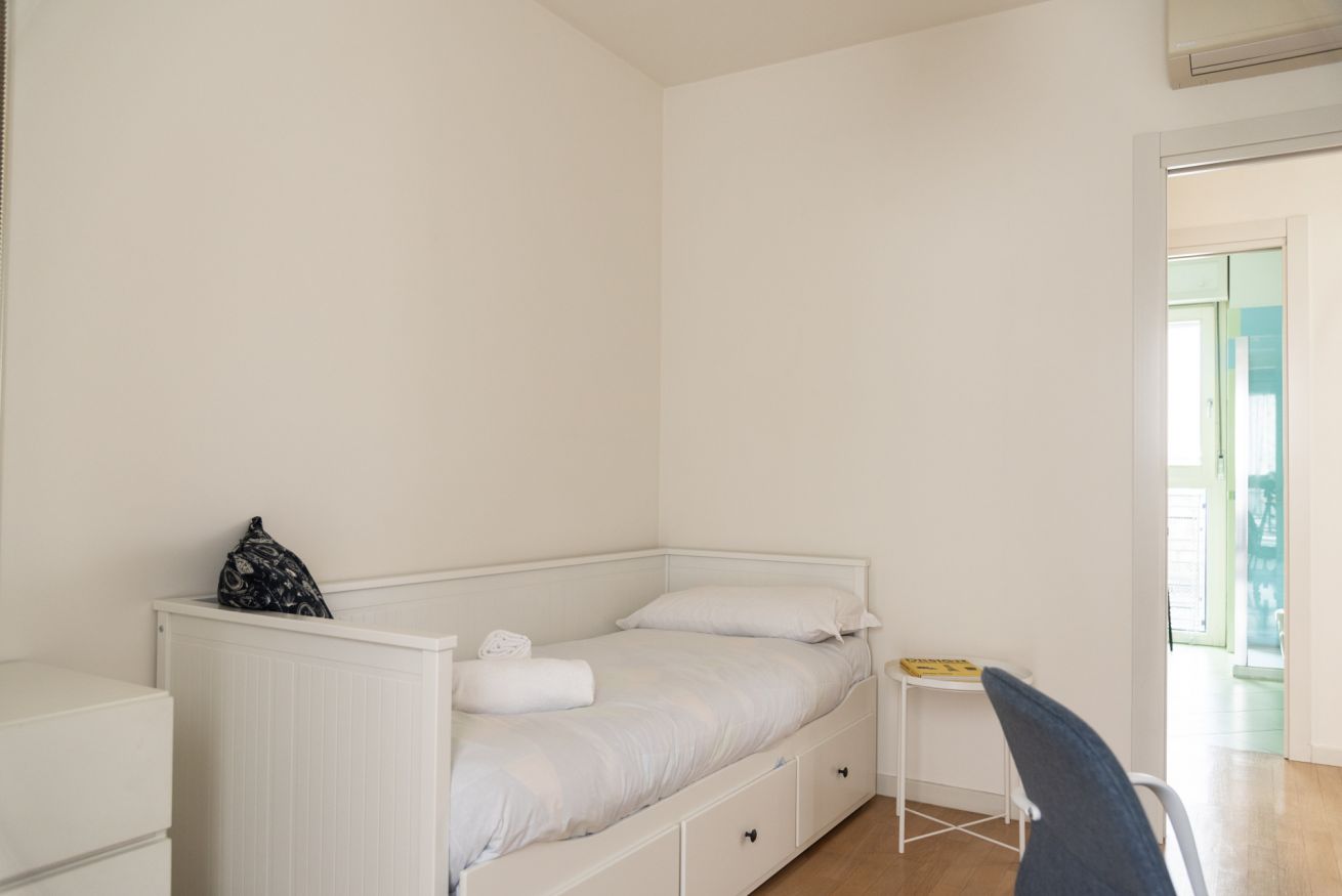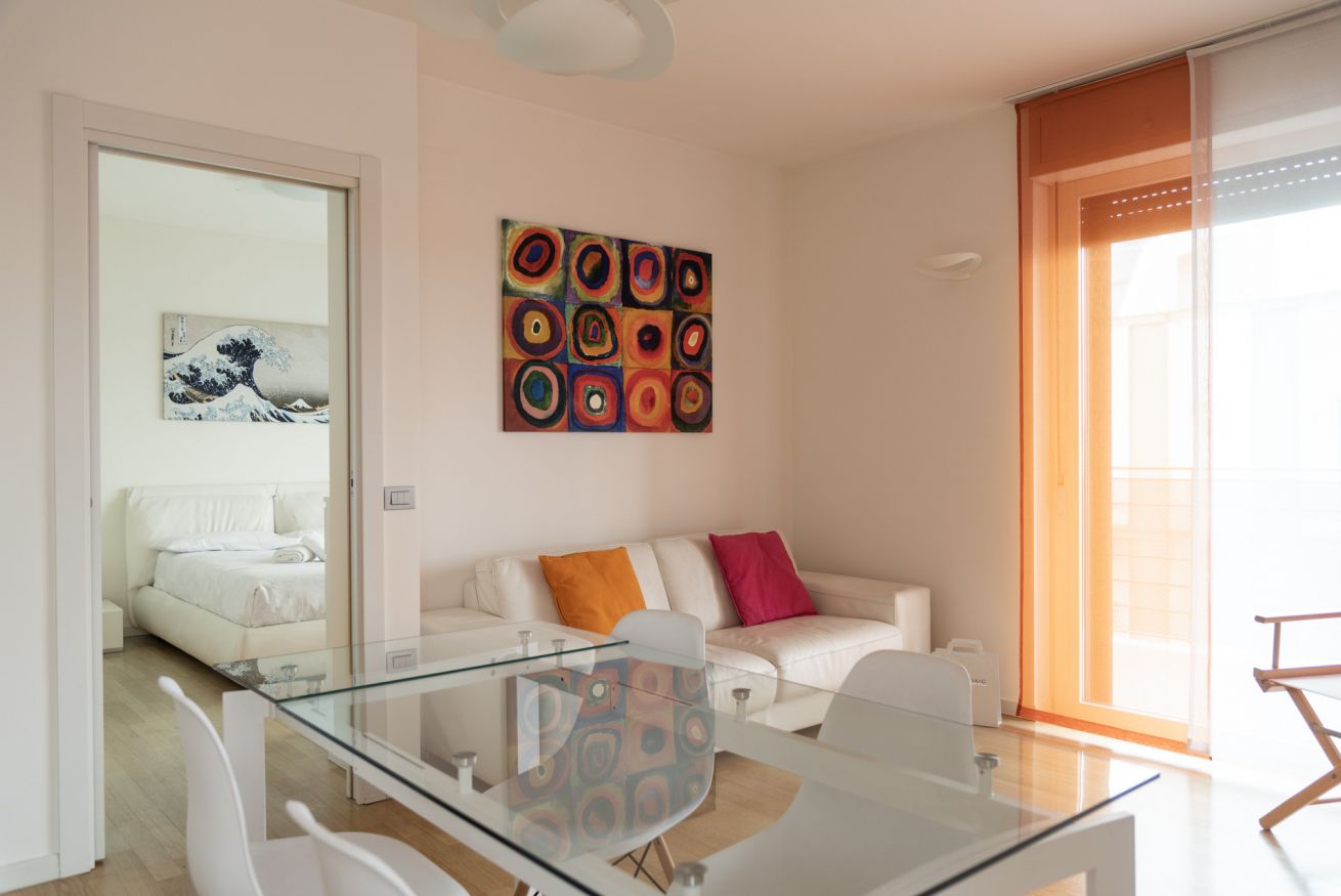 Affascinante e spazioso bilocale elegantemente arredato, caratterizzato da un ampio soggiorno con cucina a vista e zona pranzo, con accesso diretto al balcone. Nella zona notte, si trova una camera da letto con letto matrimoniale e un generoso armadio a muro, oltre a un'altra camera con letto singolo. Il bagno, completo di doccia, completa gli spazi confortevoli di questa residenza.