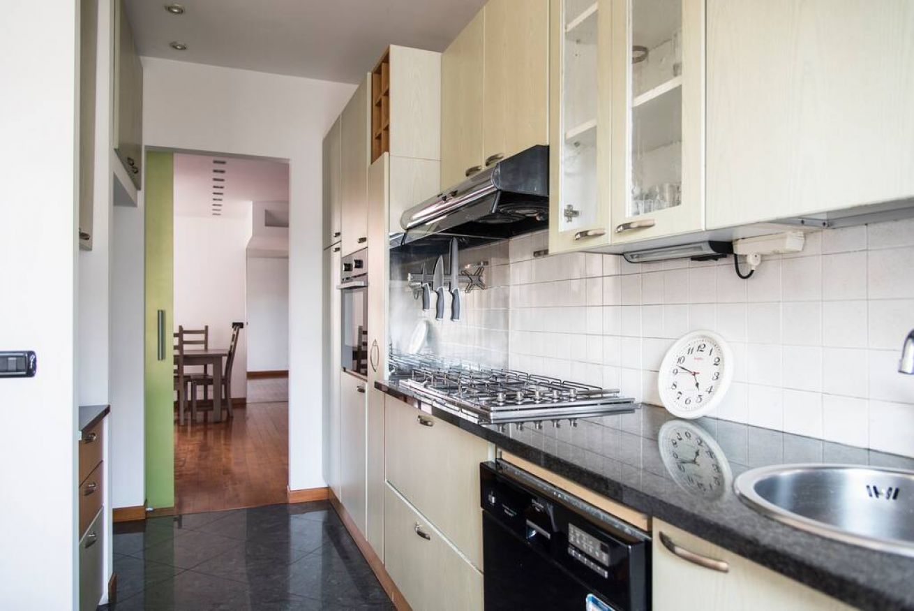 L’appartamento si trova al sesto piano di un edificio signorile dotato di ascensore e rampa per disabili. Diviso su due livelli, l’alloggio ha una zona giorno composta da due saloni con accesso al terrazzo, la cucina abitabile completamente fornita, la camera da letto e il bagno. Al secondo livello troviamo la zona notte con una camera da letto matrimoniale, ampie armadiature, un piccolo terrazzino e il bagno.