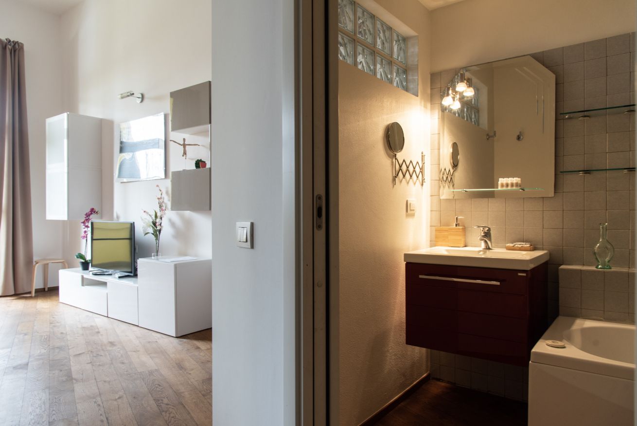 Luminoso e accogliente loft situato in una zona servita sia con mezzi di superficie, sia dalle fermate della metropolitana linea M3 Corvetto e Brenta, che conducono in centro città in soli di 10 minuti. Appena varcato l'ingresso troviamo un salotto con cucina a vista attrezzata, un comodo divano letto matrimoniale e un ampio balcone con affaccio su un' area verde. Oltre alla zona living, troviamo la zona notte soppalcata, dove è presente un comodo letto e una cabina armadio.