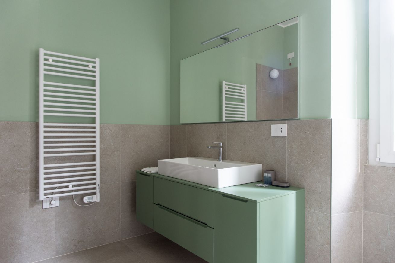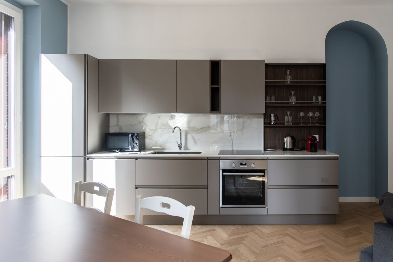 L'appartamento è appare moderno e curato nei minimi dettagli, dotato di soggiorno, con una moderna cucina e un divano letto matrimoniale, è presente inoltre una camera da letto con cabina armadio e un'ampio bagno con vasca e cabina doccia.
