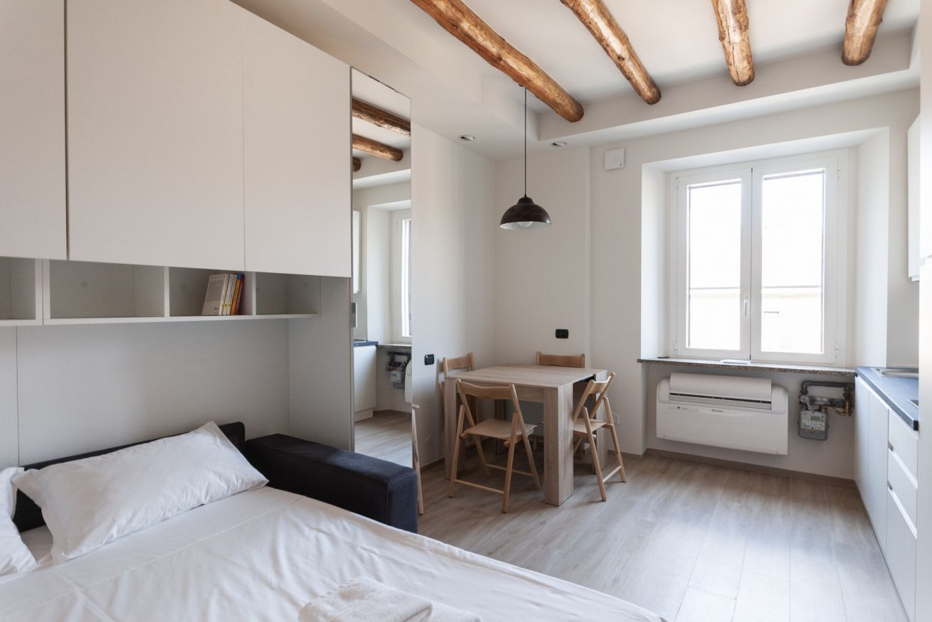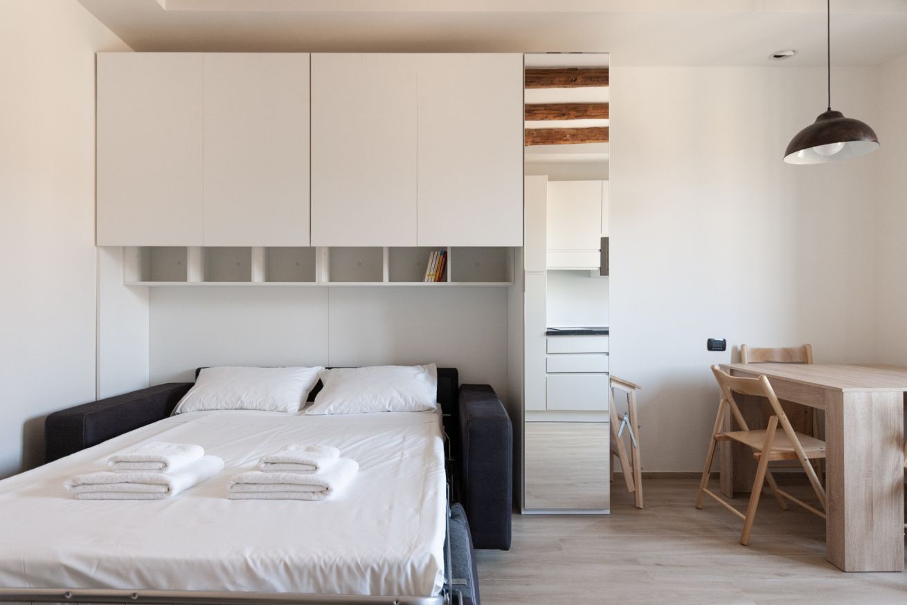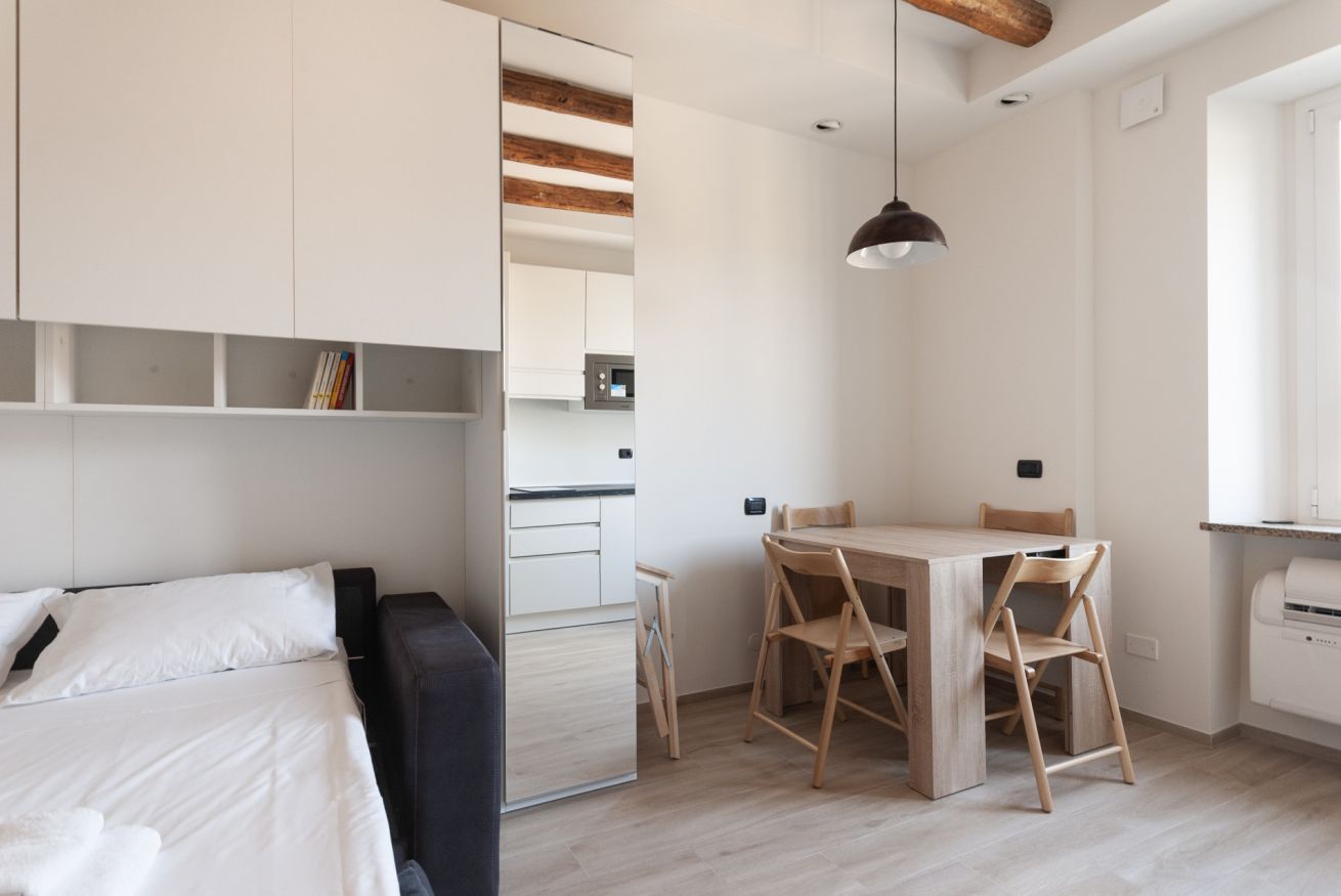 Grazioso e moderno monolocale, situato in prossimità della metropolitana M3 Maciachini. L'appartamento è dotato di un unico ambiente con moderna cucina a vista con piastra a induzione e forno a microonde e un comodo divano letto matrimoniale. E' presente inoltre un bagno con ampia cabina doccia. Interamente climatizzato, ideale per due persone alla ricerca di un ambiente confortevole e tranquillo.