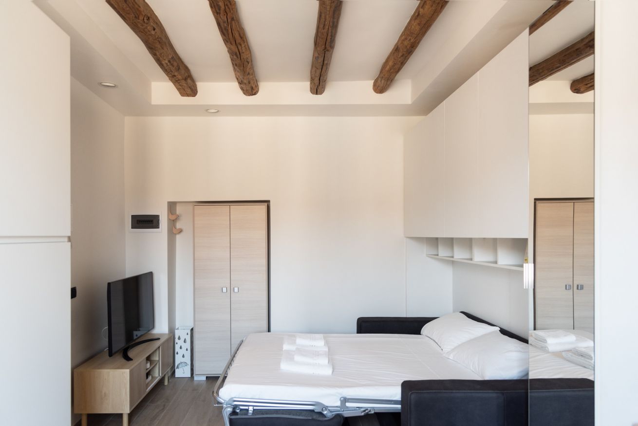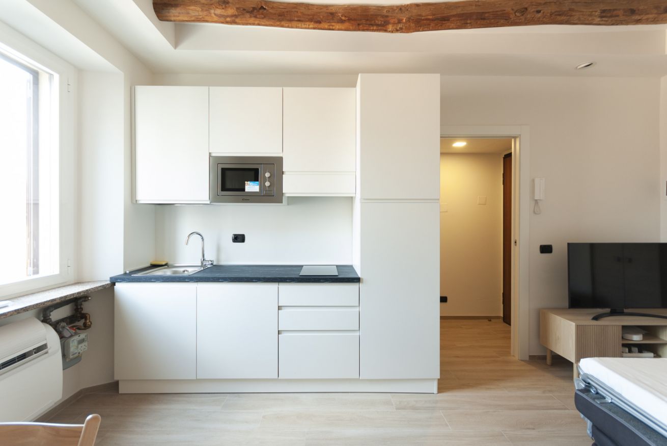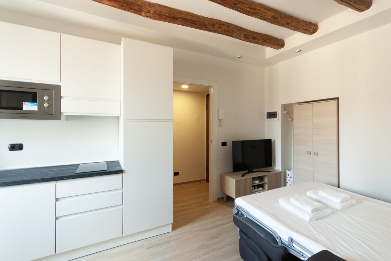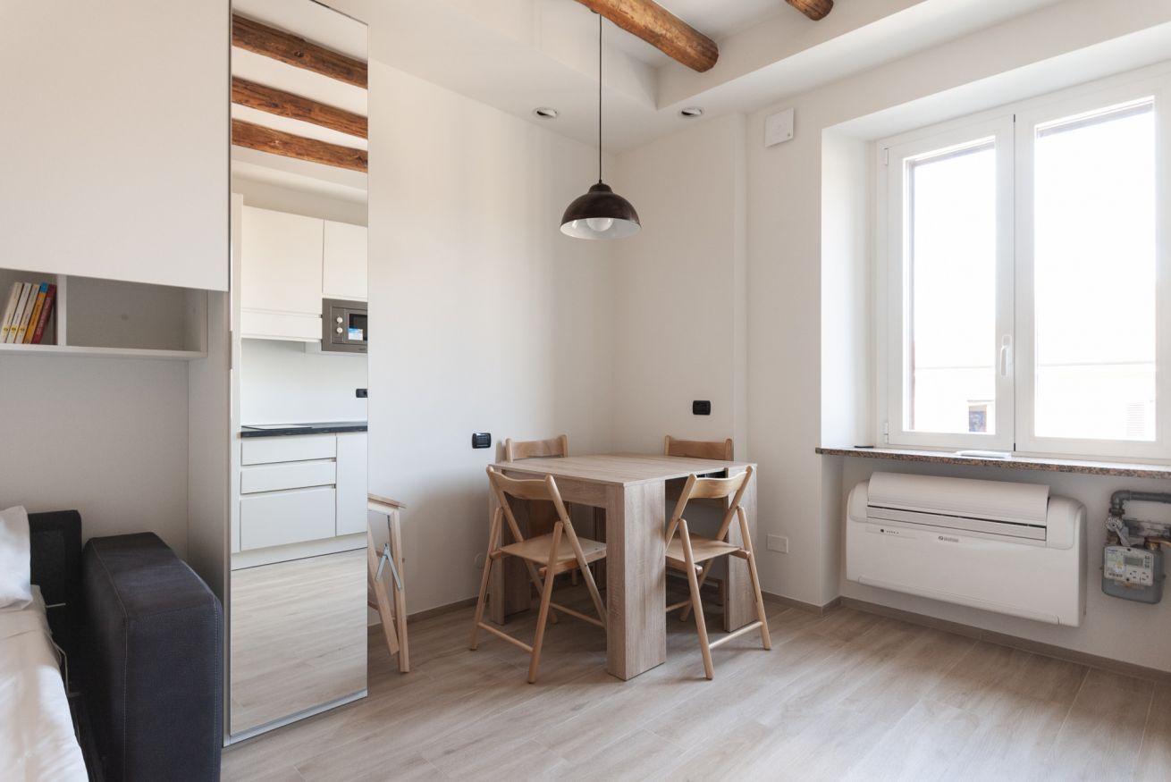 Grazioso e moderno monolocale, situato in prossimità della metropolitana M3 Maciachini. L'appartamento è dotato di un unico ambiente con moderna cucina a vista con piastra a induzione e forno a microonde e un comodo divano letto matrimoniale. E' presente inoltre un bagno con ampia cabina doccia. Interamente climatizzato, ideale per due persone alla ricerca di un ambiente confortevole e tranquillo.