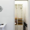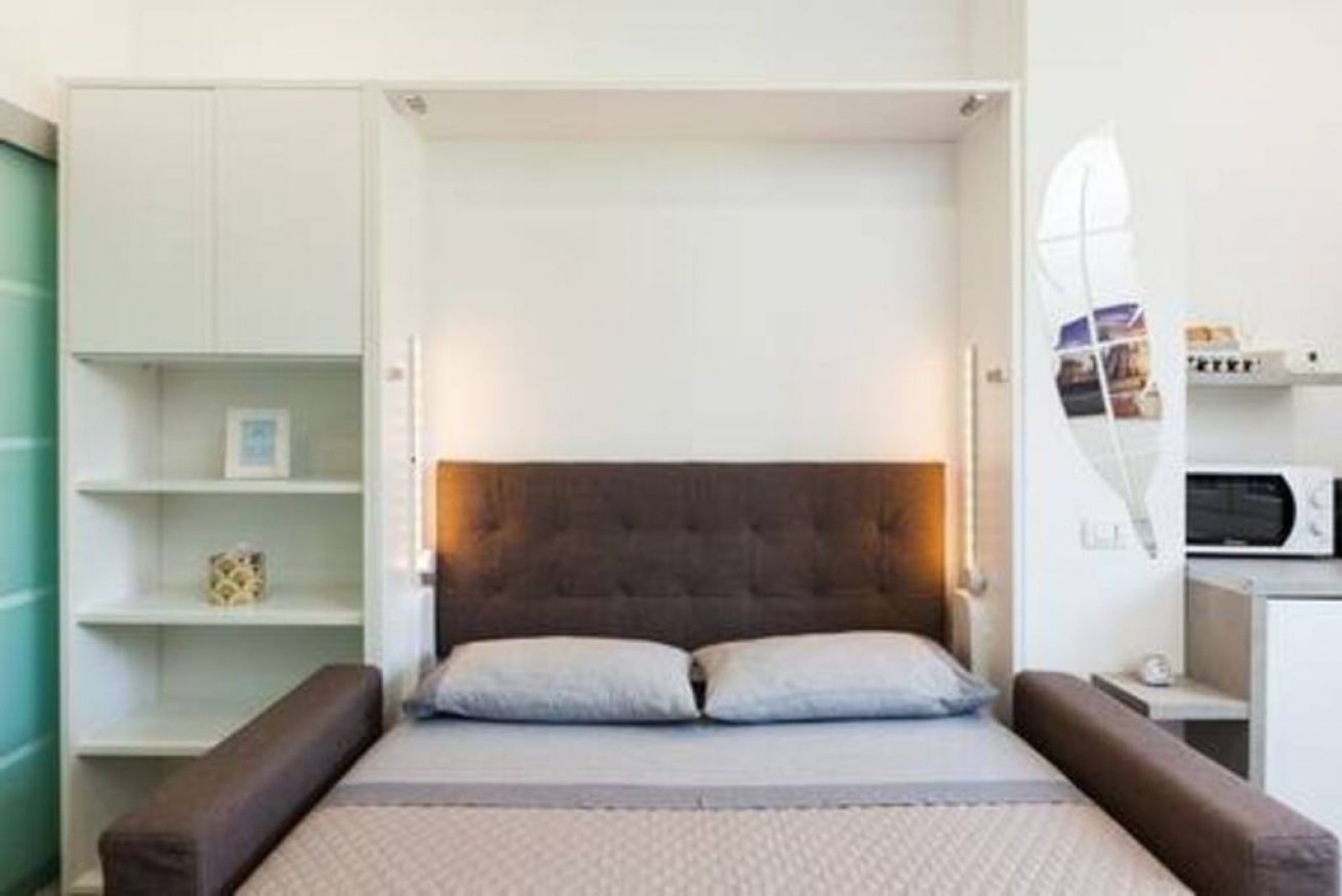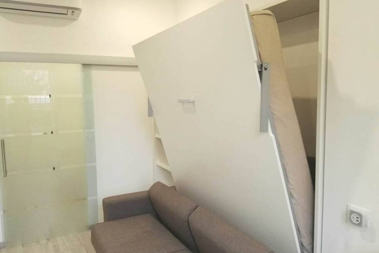 Il letto matrimoniale è a scomparsa e dotato di sistema automatico frenante. Si apre con un semplice gesto e rallenta in apertura in modo da appoggiarsi dolcemente al pavimento.