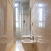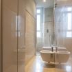 La zona notte, ben separata dal soggiorno, presenta 2 ampie camere e due bagni rivestiti in marmo con ampi specchi e servizi di design. Tutto l’appartamento è dotato di aria condizionata autonoma e fibra per il wi-fi.