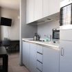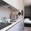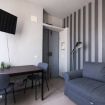 La struttura è composta da una moderna zona giorno/notte con cucina a vista, un comodo tavolo da pranzo o da lavoro e un letto matrimoniale. Separato, troviamo un ampio bagno con box doccia angolare.
